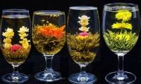 3.待工艺花茶慢慢绽开,欣赏工艺花茶在水中盛开,而后品饮茶与花结合的工艺茶口味。
