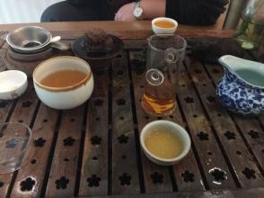 先说说最是大众化的茶馆,当属三万昌。苏州有句老话,"吃茶三万昌",可见其盛名所在,也说明是普通人常去之处。这里曾经可放一百多张茶桌,更有一个很大的评弹书场。如今书场已经荡然无存,店堂大概也只剩三分之一,且装砌一新,一楼专卖茶叶,二楼方是茶馆。堂内还显得宽敞明亮,茶桌呈放有序,两边的回廊上反倒是拥挤,如同楼下观前街上如云的人群。生意很好,几乎难寻空位。终于拣了个廊上的位置,坐定后忽闻阵阵古怪的肉香,才发现原来毗邻肯得鸡和必胜客,均是我深恶痛觉的食物。茶的种类是我所见的苏州茶馆中最多的,江南的几种绿茶都全,兼有铁观音,价格偏贵但仍合理。然而果汁饮料和酒的品种,是茶的数倍。果然是老店新办。要的茶是阳羡毛尖,虽然早已知道这样的大众茶馆不可能讲究茶艺,看见端上来的茶,嫩芽被烫老沉底,仍是愕然。临近桌几个年轻人,嗑着瓜子吃着爆米花,笑语盈盈,很是快乐的样子。这样初秋的黄昏,有浅浅的风划过回廊,虽然茶不如意四周喧嚣嘈杂,依然禁不住遥想当年,每日数百茶客在这里品茶论道的壮观场面。那时的三万昌也热闹鼎沸,"然而茶客的心是静的".快乐是容易的,心静却难多了。