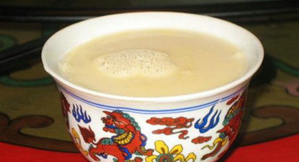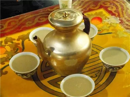 酥油茶是藏族民众每日必不可少的饮料,可能很少有人知道,制作酥油茶的原料最重要的就是“茯茶”,酥油茶用茯茶熬制,茶汁很浓,有生津止渴、提神醒脑、防止动脉硬化、抗老防衰、抗癌等的作用。茯茶含有维生素和茶碱,可以补充藏族民众由于食蔬菜少而引起的维生素不足,溶解脂肪,帮助消化。